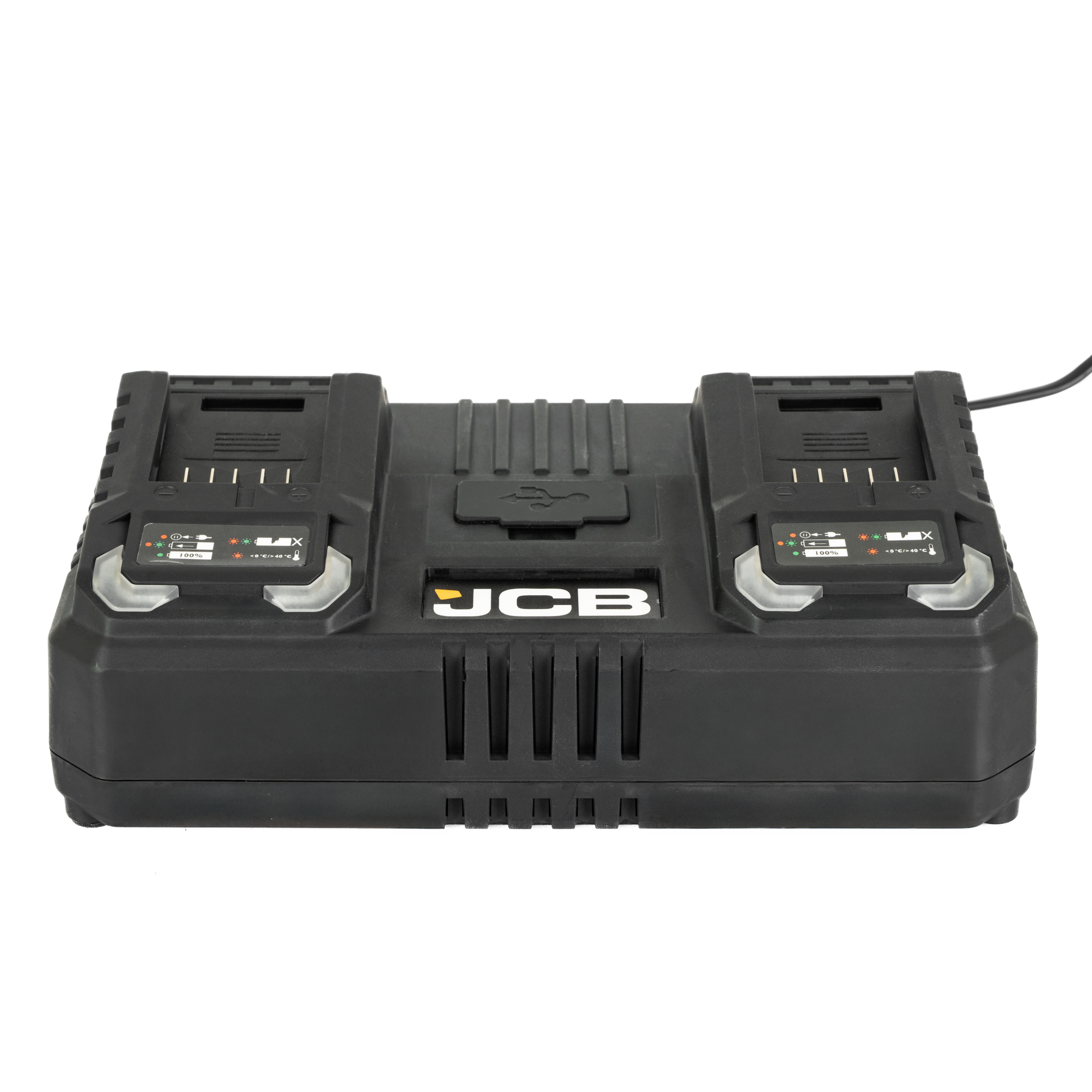 Dankzij het slimme oplaadsysteem worden accu’s optimaal en veilig geladen, waardoor de levensduur wordt verlengd. De ingebouwde LED-indicatoren tonen duidelijk de laadstatus, terwijl het robuuste ontwerp perfect aansluit bij het professionele karakter van de JCB Pro-Line gereedschappen.