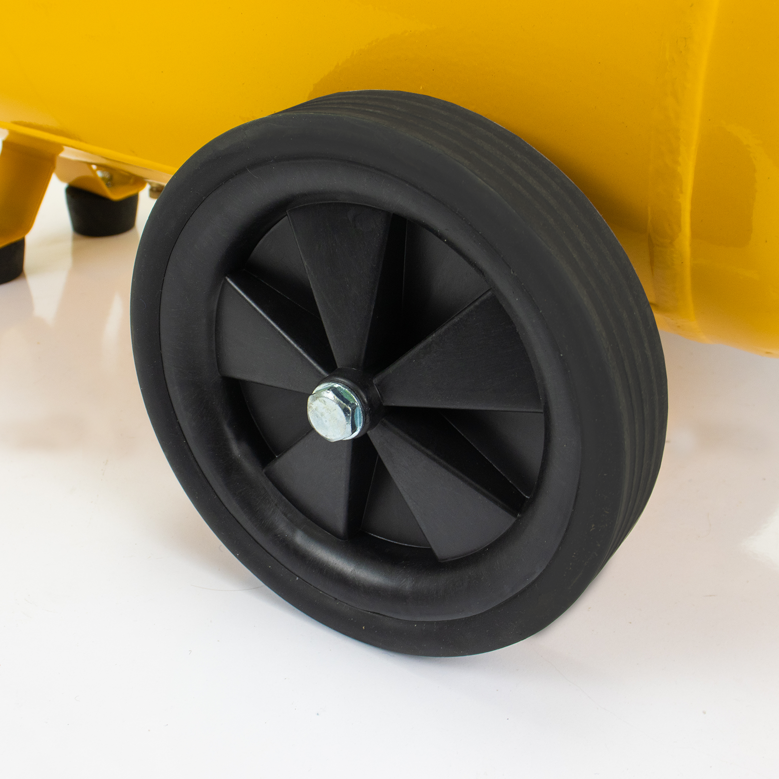 De snelkoppeling zorgt voor eenvoudig wisselen van gereedschap en de lekvrije massief rubberen wielen garanderen eenvoudig transport.